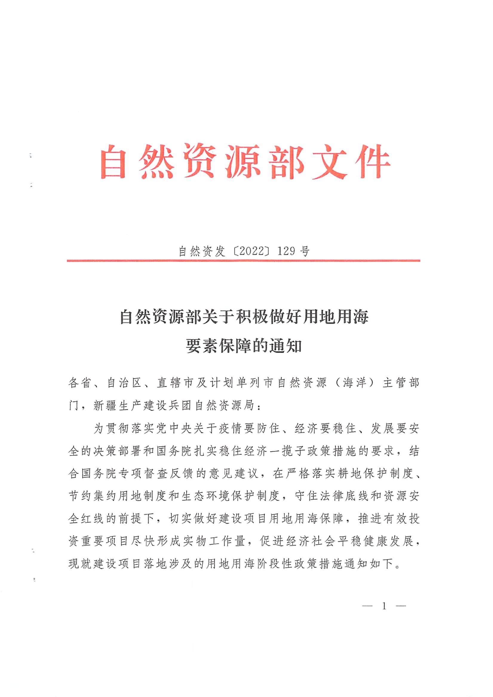 自然资发〔2022〕129号_《自然资源部关于积极做好用地用海要素保障的通知》