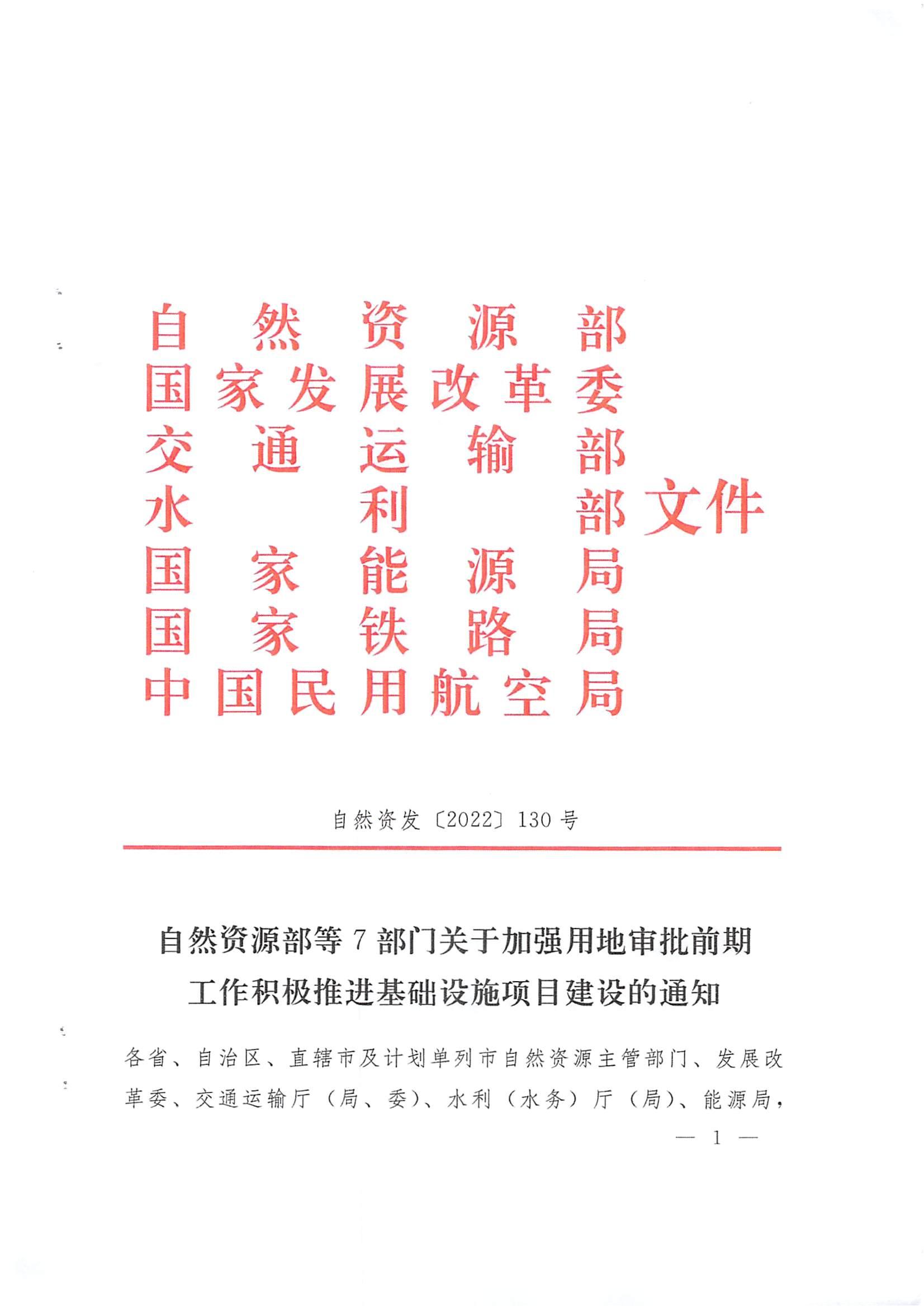 自然资发〔2022〕130号_《自然资源部等7部门关于加强用地审批前期工作积极推进基础设施项目建设的通知》
