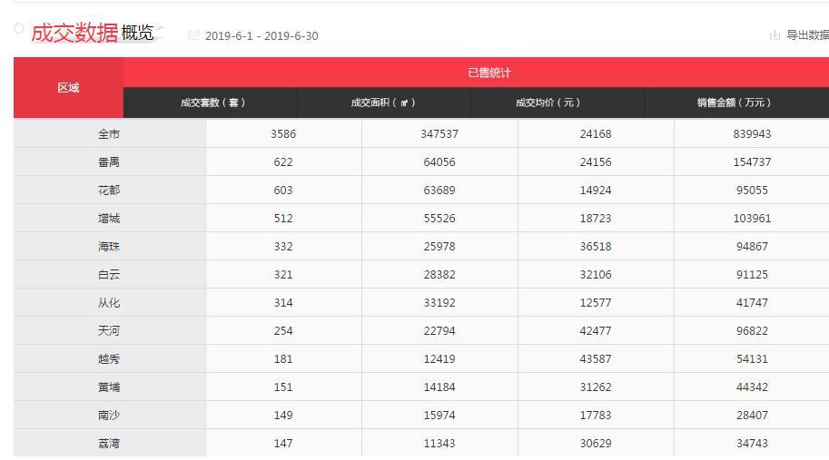 其中,番禺区以622套的成交套数并列榜首,而越秀区则以43587元/㎡的成交均价夺得全市楼价之冠。