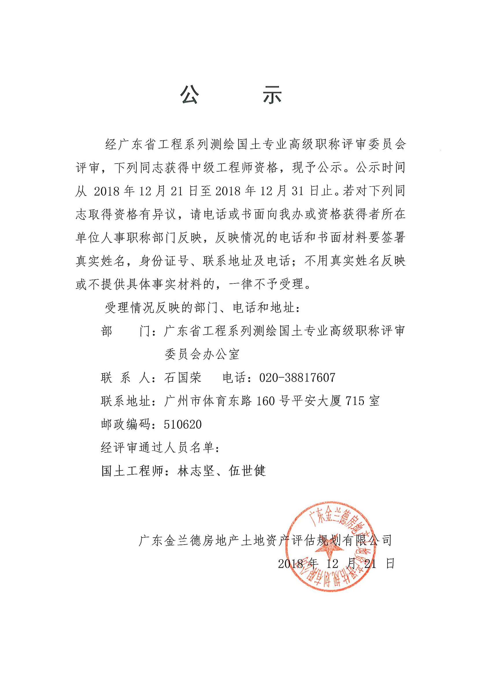 广东金兰德2018年广东省国土工程师名单公示 | 公司新闻 | 文章中心 | 广东金兰德房地产土地资产评估规划有限公司