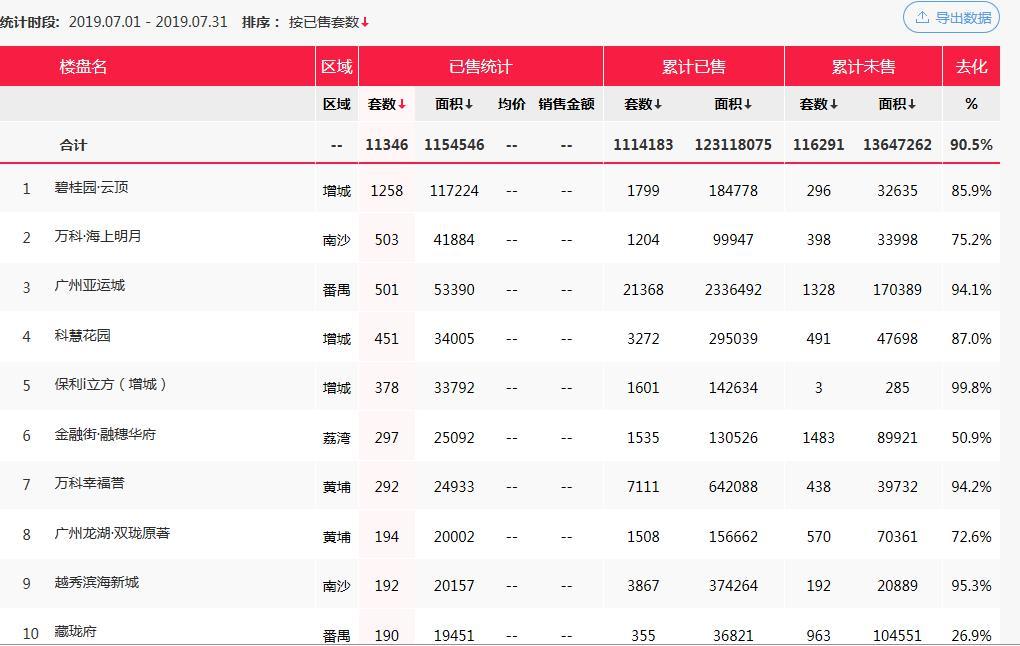 成交量方面,天河区的远洋天骄广场、南沙区的碧桂园星港国际和南沙区的南沙珠江湾分别位列前三位。