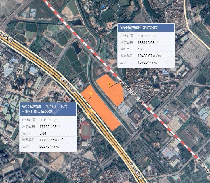 地块位于寮步镇药勒、浮竹山、小坑村松山湖大道旁边,出让面积48727.94㎡,可建设用地面积44716.78㎡,综合容积率为3.84,最大计容建面171925㎡。