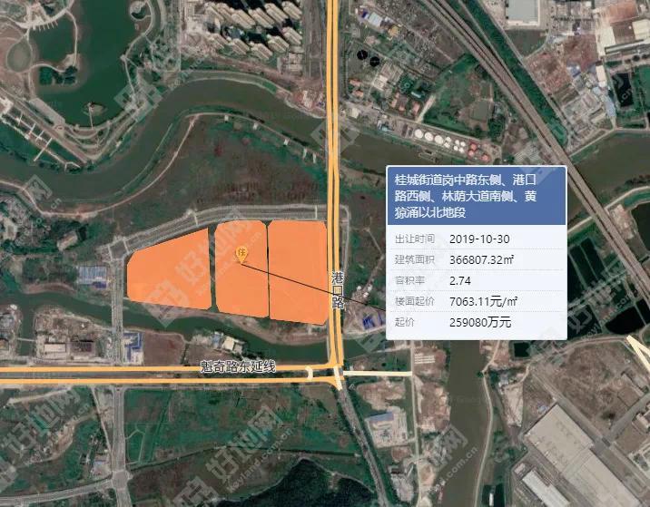 地块位于桂城街道岗中路东侧、港口路西侧、林荫大道南侧、黄猄涌以北地段,出让面积133760.34㎡,综合容积率为2.74,最大计容建面366807.32㎡。