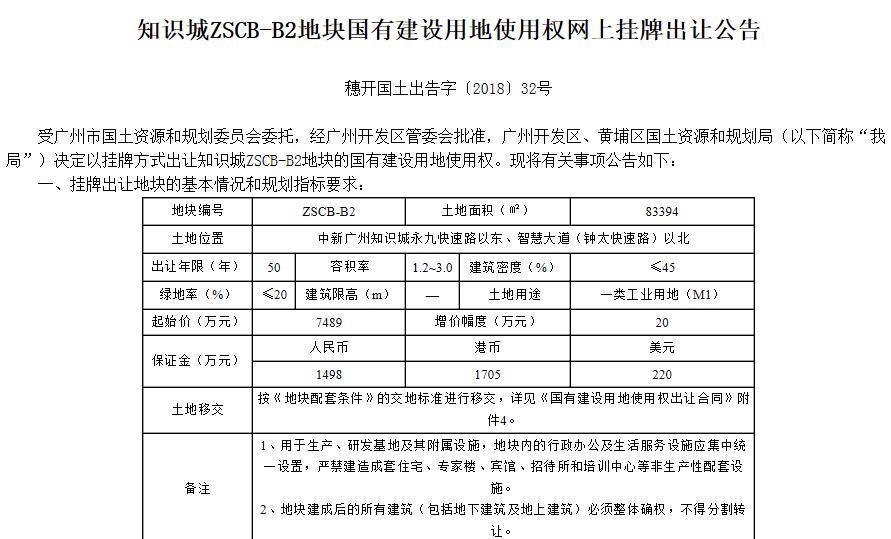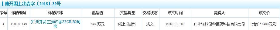 另外,位于中新知识城的ZSCB-B2地块为诺诚健华医药竞得。